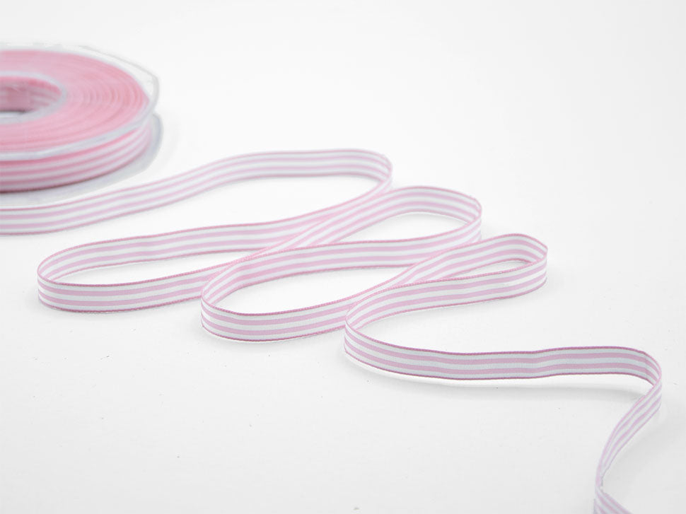 Bamby Rigato 10 MM Rosa Baby. Il Bamby rigato è un nastro a righine, adatto agli utilizzi per le decorazioni dei bambini, come i fiocchi di nascita bimbo e bimba, oppure, negli altri colori, per confezioni country e allegre, tipo brandina. Codice colore# 20 - CONFEZIONATO IN BOBINA DA METRI 25