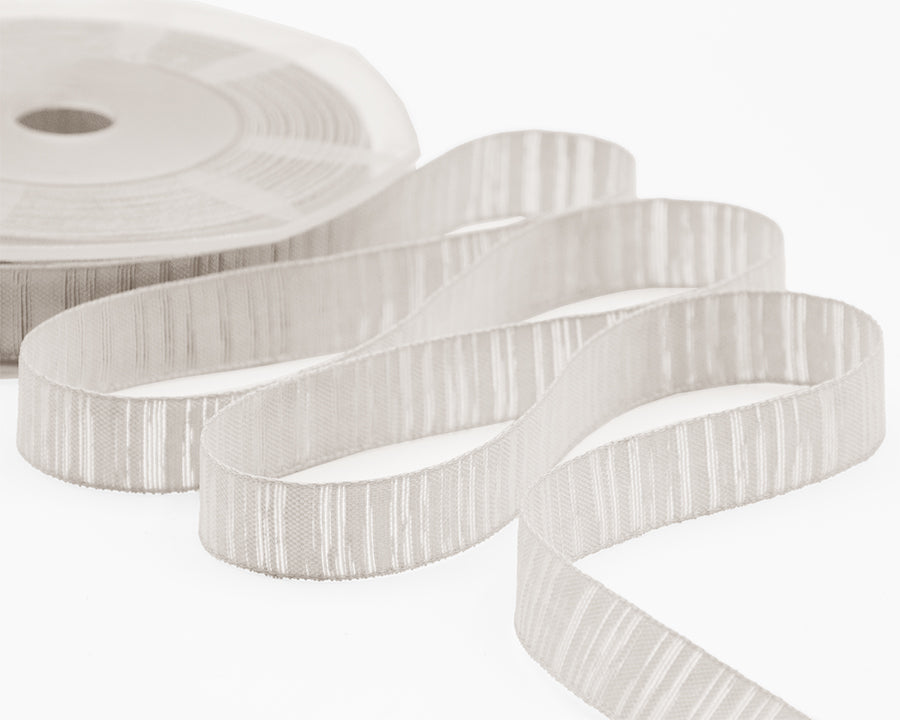 L’articolo N28 è un nastro dall’aspetto grezzo in cui si intravede una lavorazione a fiamma, i suoi bordi sono rinforzati quindi sono facili da lavorare e da modellare e mantengono la forma nel tempo per vari tipi di decorazione.