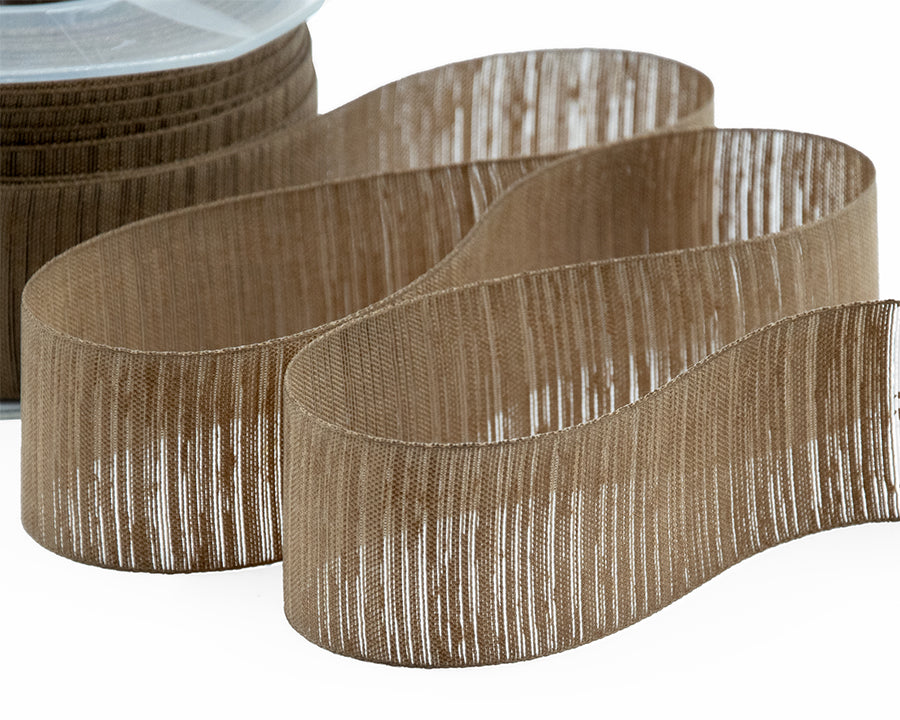 L’articolo N28 è un nastro dall’aspetto grezzo in cui si intravede una lavorazione a fiamma, i suoi bordi sono rinforzati quindi sono facili da lavorare e da modellare e mantengono la forma nel tempo per vari tipi di decorazione.