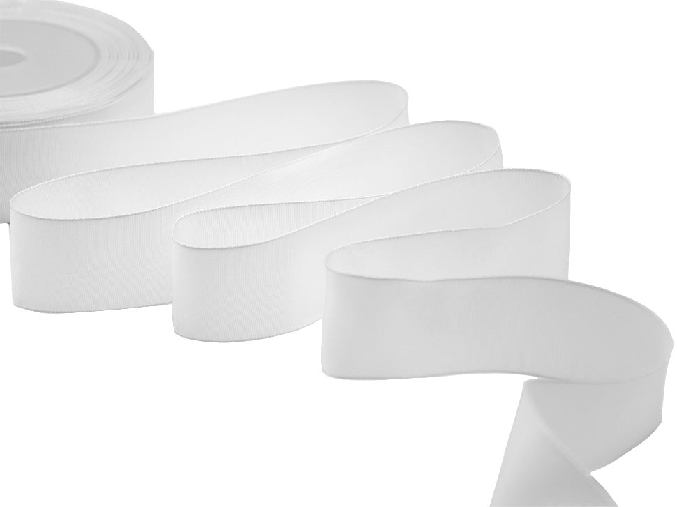 Carlotta Raso Bordi Rame 27 MM Bianco Ottico. Il taffetà con i bordi animati, Carlotta, è setoso e lucido. Il suo tessuto è formato da fili sottilissimi che donano un aspetto particolarmente ricercato e il bordo in rame permette di fare confezioni perfette, ben modellate, particolarmente adatte per la pasticceria, la dolciaria, il cake-design e tutta la vetrinistica. Codice colore# 13 - CONFEZIONATO IN BOBINA DA METRI 20