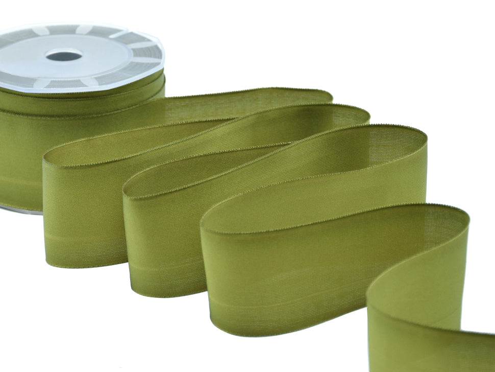 Carlotta Raso Bordi Rame 40 MM Verde Muschio. Il taffetà con i bordi animati, Carlotta, è setoso e lucido. Il suo tessuto è formato da fili sottilissimi che donano un aspetto particolarmente ricercato e il bordo in rame permette di fare confezioni perfette, ben modellate, partiolarmente adatte per la pasticceria, la dolciaria, il cake-design e tutta la vetrinistica. Codice colore# 39 - CONFEZIONATO IN BOBINA DA METRI 20