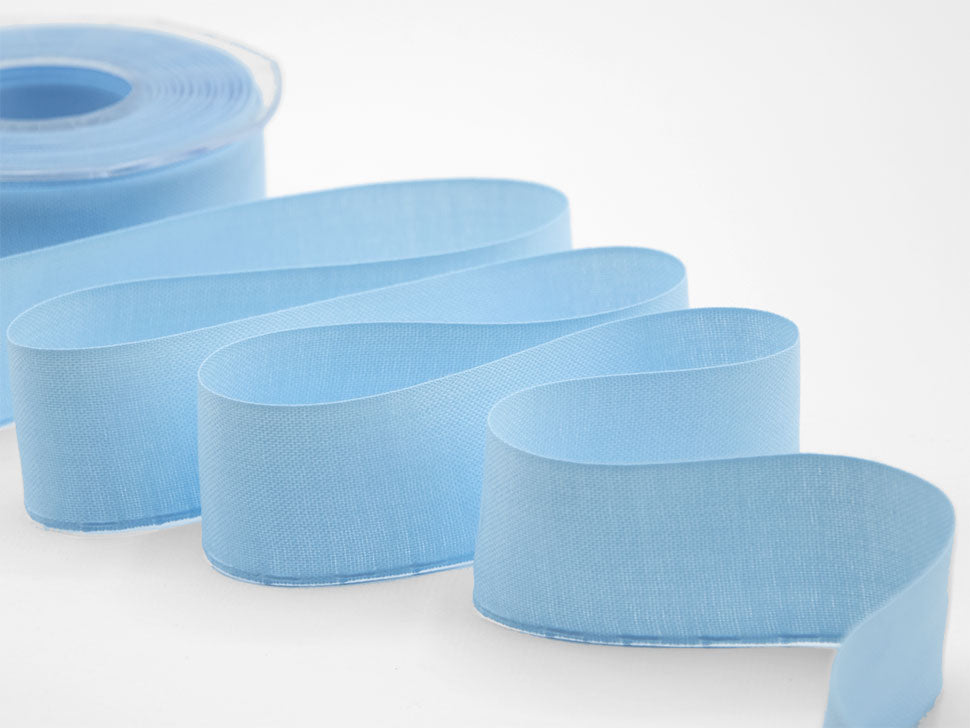 Coccardina Cotone 35 MM Azzurro Baby. I nastri dotati di tirante laterale hanno un cordino sul bordo che viene utilizzato per creare le coccarde. Questa versione è di tipo COTONE. Codice colore# 593 - CONFEZIONATO IN BOBINA DA METRI 20