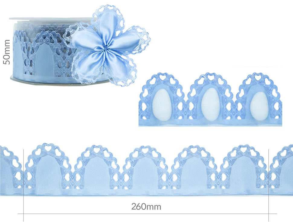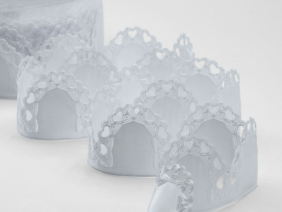 Il nastro portaconfetti Cuore si presenta come nastro doppio, da un lato è una tela semiopaca e dall’altro è un velo trasparente, tagliato e bordato con disegni a forma di petali ripetuti a sequenza. Elegante, raffinato, morbido al tatto è adatto alla realizzazione di bomboniere fai da te per ogni tipo di occasione e di cerimonia: battesimo, comunione, cresima, laurea, matrimonio, diciottesimo, fidanzamento. Codice colore# 13 - CONFEZIONATO IN BOBINA DA METRI 10 o 25