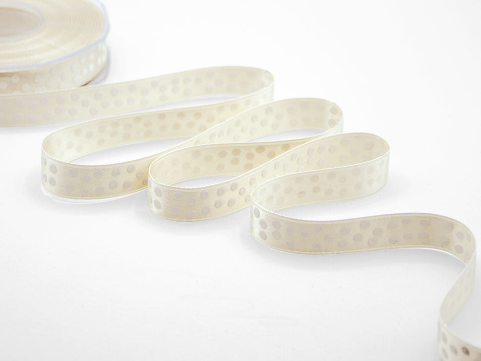D.Raso 16 MM Stampa Pois Bianchi Avorio. Il nastro elegante e raffinato per definizione è il doppio raso, qui è presentato in una variante stampata. È versatile e bello da lavorare e, nella sua semplicità, si presta ad ogni utilizzo. Essendo un prodotto di alta qualità si annoda molto facilmente formando un bel fiocco con le code che presentano un taglio netto e definito, che non si sfilaccia. Il suo aspetto è luminoso, consistente e corposo, ma al tatto è decisamente delicato e setoso. I suoi 3mm di altezza e le infinite possibilità di personalizzazione lo rendono un nastro ideale per molteplici utilizzi: dalla confezione di bomboniere di matrimoni e cerimonie alla decorazione dei fiori e della tavola; dalle confezioni regalo, anche natalizie, a tutti gli eventi di pregio.. Codice colore# 35 - CONFEZIONATO IN BOBINA DA METRI 20