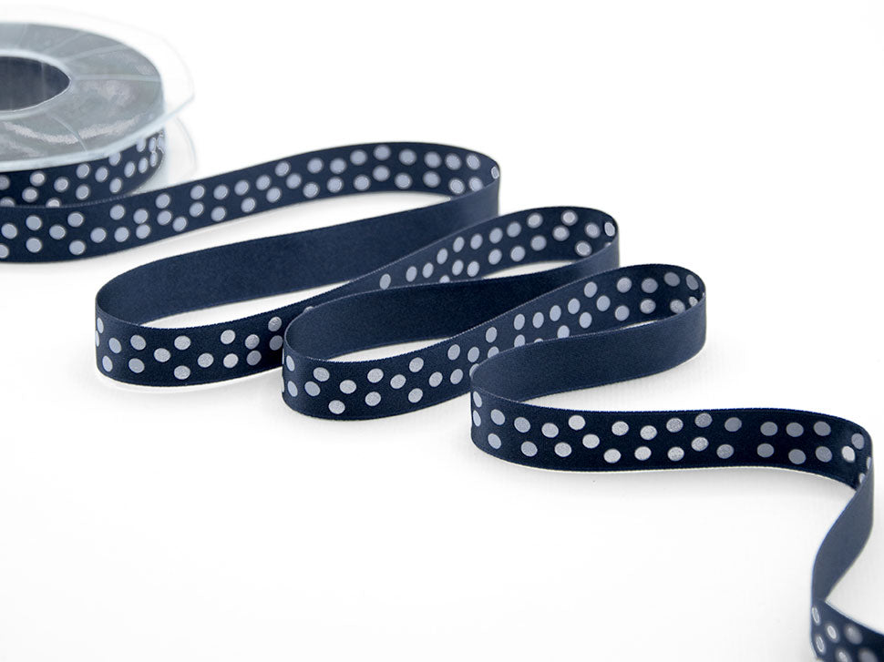 D.Raso 16 MM Stampa Pois Bianchi Blu Notte. Il nastro elegante e raffinato per definizione è il doppio raso, qui è presentato in una variante stampata. È versatile e bello da lavorare e, nella sua semplicità, si presta ad ogni utilizzo. Essendo un prodotto di alta qualità si annoda molto facilmente formando un bel fiocco con le code che presentano un taglio netto e definito, che non si sfilaccia. Il suo aspetto è luminoso, consistente e corposo, ma al tatto è decisamente delicato e setoso. I suoi 16mm di altezza e le infinite possibilità di personalizzazione lo rendono un nastro ideale per molteplici utilizzi: dalla confezione di bomboniere di matrimoni e cerimonie alla decorazione dei fiori e della tavola; dalle confezioni regalo, anche natalizie, a tutti gli eventi di pregio.. Codice colore# 1080 - CONFEZIONATO IN BOBINA DA METRI 20
