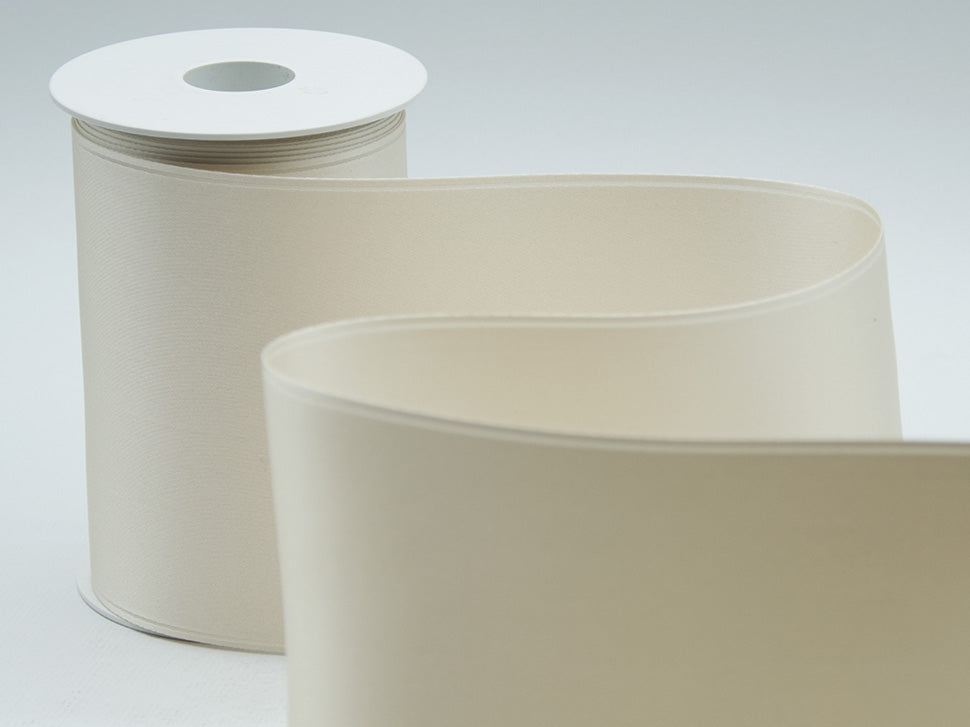 Il nastro elegante e raffinato per definizione è il doppio raso. È versatile e bello da lavorare e, nella sua semplicità, si presta ad ogni utilizzo. Essendo un prodotto di alta qualità si annoda molto facilmente formando un bel fiocco con le code che presentano un taglio netto e definito, che non si sfilaccia. Il suo aspetto è luminoso, consistente e corposo, ma al tatto è decisamente delicato e setoso. Disponibile in un’ampia gamma di tonalità e altezze, viene qui presentato nel colore 1, bianco naturale, un colore classico, romantico ed intramontabile, perfetto per matrimoni e bomboniere ma adatto ad ogni occasione. I suoi 100mm per confezioni molto importanti e per la decorazione della tavola di altezza e le infinite possibilità di personalizzazione lo rendono un nastro ideale per molteplici utilizzi: dalla confezione di bomboniere di matrimoni e cerimonie alla decorazione dei fiori e della tavola; dalle confezioni regalo, anche natalizie, a tutti gli eventi di pregio. La bobina contiene 10 metri di nastro doppio raso 100mm per confezioni molto importanti e per la decorazione della tavola. Disponibile in un’ampia gamma di tonalità e altezze, viene qui presentato nel colore 35, avorio