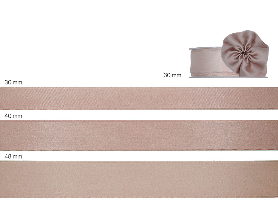 Il nastro elegante e raffinato per definizione è il doppio raso. È versatile e bello da lavorare e, nella sua semplicità, si presta ad ogni utilizzo. Essendo un prodotto di alta qualità si annoda molto facilmente formando un bel fiocco con le code che presentano un taglio netto e definito, che non si sfilaccia. Il suo aspetto è luminoso, consistente e corposo, ma al tatto è decisamente delicato e setoso. I suoi 30mm con tirante laterale per formare una coccarda di altezza e le infinite possibilità di personalizzazione lo rendono un nastro ideale per molteplici utilizzi: dalla confezione di bomboniere di matrimoni e cerimonie alla decorazione dei fiori e della tavola; dalle confezioni regalo, anche natalizie, a tutti gli eventi di pregio. La bobina contiene 25 metri di nastro doppio raso 30mm con tirante laterale per formare una coccarda. Disponibile in un’ampia gamma di tonalità e altezze, viene qui presentato nel colore 25, salmone