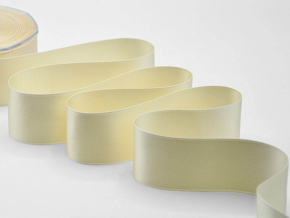 Il nastro elegante e raffinato per definizione è il doppio raso. È versatile e bello da lavorare e, nella sua semplicità, si presta ad ogni utilizzo. Essendo un prodotto di alta qualità si annoda molto facilmente formando un bel fiocco con le code che presentano un taglio netto e definito, che non si sfilaccia. Il suo aspetto è luminoso, consistente e corposo, ma al tatto è decisamente delicato e setoso. I suoi 40mm con tirante laterale per formare una coccarda di altezza e le infinite possibilità di personalizzazione lo rendono un nastro ideale per molteplici utilizzi: dalla confezione di bomboniere di matrimoni e cerimonie alla decorazione dei fiori e della tavola; dalle confezioni regalo, anche natalizie, a tutti gli eventi di pregio. La bobina contiene 25 metri di nastro doppio raso 40mm con tirante laterale per formare una coccarda. Disponibile in un’ampia gamma di tonalità e altezze, viene qui presentato nel colore 12, champagne