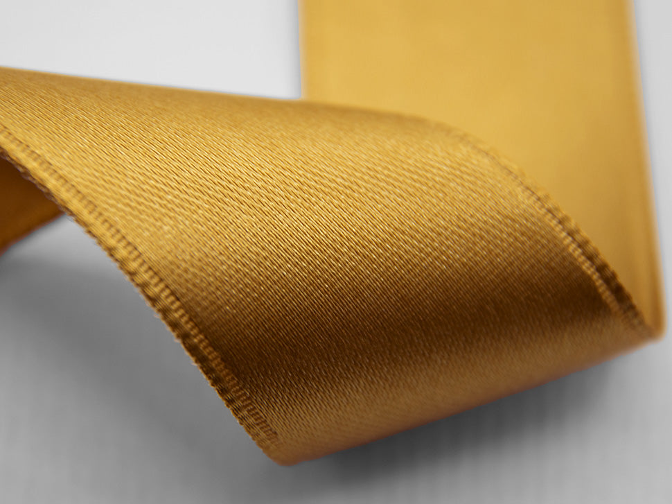Il nastro elegante e raffinato per definizione è il doppio raso. È versatile e bello da lavorare e, nella sua semplicità, si presta ad ogni utilizzo. Essendo un prodotto di alta qualità si annoda molto facilmente formando un bel fiocco con le code che presentano un taglio netto e definito, che non si sfilaccia. Il suo aspetto è luminoso, consistente e corposo, ma al tatto è decisamente delicato e setoso. I suoi 40mm con tirante laterale per formare una coccarda di altezza e le infinite possibilità di personalizzazione lo rendono un nastro ideale per molteplici utilizzi: dalla confezione di bomboniere di matrimoni e cerimonie alla decorazione dei fiori e della tavola; dalle confezioni regalo, anche natalizie, a tutti gli eventi di pregio. La bobina contiene 25 metri di nastro doppio raso 40mm con tirante laterale per formare una coccarda. Disponibile in un’ampia gamma di tonalità e altezze, viene qui presentato nel colore 1085, senape