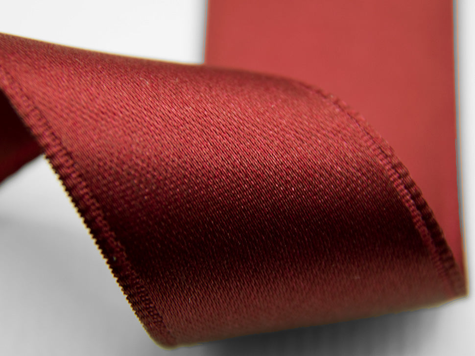 Il nastro elegante e raffinato per definizione è il doppio raso. È versatile e bello da lavorare e, nella sua semplicità, si presta ad ogni utilizzo. Essendo un prodotto di alta qualità si annoda molto facilmente formando un bel fiocco con le code che presentano un taglio netto e definito, che non si sfilaccia. Il suo aspetto è luminoso, consistente e corposo, ma al tatto è decisamente delicato e setoso. I suoi 50mm con tirante laterale per formare una coccarda di altezza e le infinite possibilità di personalizzazione lo rendono un nastro ideale per molteplici utilizzi: dalla confezione di bomboniere di matrimoni e cerimonie alla decorazione dei fiori e della tavola; dalle confezioni regalo, anche natalizie, a tutti gli eventi di pregio. La bobina contiene 25 metri di nastro doppio raso 50mm con tirante laterale per formare una coccarda. Disponibile in un’ampia gamma di tonalità e altezze, viene qui presentato nel colore 1226, bordeaux