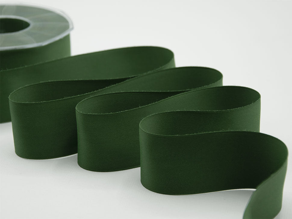 Doppio Raso Opaco 40 MM Verde Inglese. Se il doppio raso Furlanis è il protagonista del confezionamento, il Doppio Raso Opaco Furlanis ne sublima la sua fama esaltando tutti i pregi con l'aggiunta di questo tocco setoso opaco estremamente raffinato. È un nastro tessuto con moltissimi fili tipo seta, morbidissimo, adatto a qualsiasi stampa, con code dal taglio netto estremamente preciso, bellissimo da lavorare, molto attuale.. Codice colore# 633 - CONFEZIONATO IN BOBINA DA METRI 20