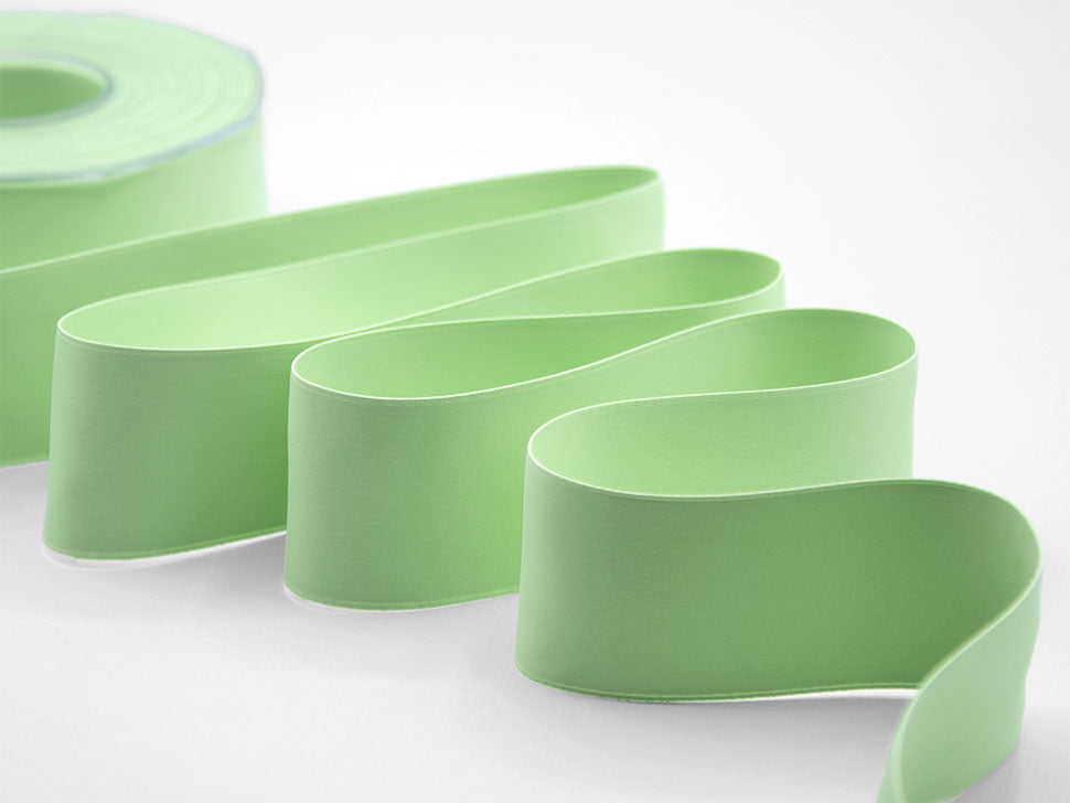 Doppio Raso Opaco 40 MM Verde Mela Chiaro. Se il doppio raso Furlanis è il protagonista del confezionamento, il Doppio Raso Opaco Furlanis ne sublima la sua fama esaltando tutti i pregi con l'aggiunta di questo tocco setoso opaco estremamente raffinato. È un nastro tessuto con moltissimi fili tipo seta, morbidissimo, adatto a qualsiasi stampa, con code dal taglio netto estremamente preciso, bellissimo da lavorare, molto attuale.. Codice colore# 549 - CONFEZIONATO IN BOBINA DA METRI 20