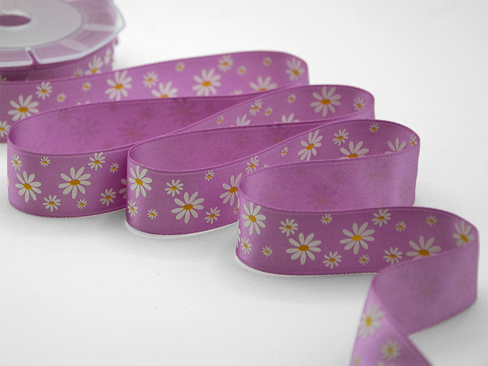 Doppio Raso Stampa Serigraf.25 MM Margherite Bicolor Ciclamino C. Il nastro elegante e raffinato per definizione è il doppio raso, qui è presentato in una variante stampata. È versatile e bello da lavorare e, nella sua semplicità, si presta ad ogni utilizzo. Essendo un prodotto di alta qualità si annoda molto facilmente formando un bel fiocco con le code che presentano un taglio netto e definito, che non si sfilaccia. Il suo aspetto è luminoso, consistente e corposo, ma al tatto è decisamente delicato e setoso. I suoi 25 mm di altezza e le infinite possibilità di personalizzazione lo rendono un nastro ideale per molteplici utilizzi: dalla confezione di bomboniere di matrimoni e cerimonie alla decorazione dei fiori e della tavola; dalle confezioni regalo, anche natalizie, a tutti gli eventi di pregio.. Codice colore# 45/60 - CONFEZIONATO IN BOBINA DA METRI 10