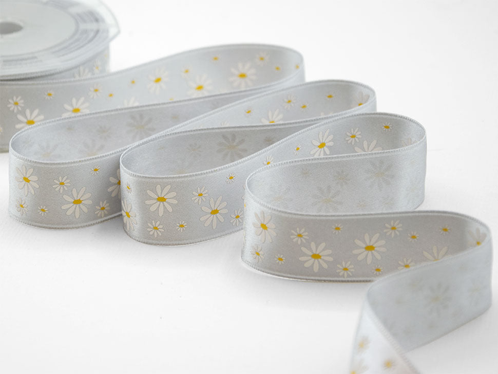 Doppio Raso Stampa Serigraf.25 MM Margherite Bicolor Grigio Perla. Il nastro elegante e raffinato per definizione è il doppio raso, qui è presentato in una variante stampata. È versatile e bello da lavorare e, nella sua semplicità, si presta ad ogni utilizzo. Essendo un prodotto di alta qualità si annoda molto facilmente formando un bel fiocco con le code che presentano un taglio netto e definito, che non si sfilaccia. Il suo aspetto è luminoso, consistente e corposo, ma al tatto è decisamente delicato e setoso. I suoi 25 mm di altezza e le infinite possibilità di personalizzazione lo rendono un nastro ideale per molteplici utilizzi: dalla confezione di bomboniere di matrimoni e cerimonie alla decorazione dei fiori e della tavola; dalle confezioni regalo, anche natalizie, a tutti gli eventi di pregio.. Codice colore# 45/73 - CONFEZIONATO IN BOBINA DA METRI 10