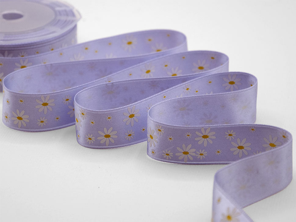 Doppio Raso Stampa Serigraf.25 MM Margherite Bicolor Lilla. Il nastro elegante e raffinato per definizione è il doppio raso, qui è presentato in una variante stampata. È versatile e bello da lavorare e, nella sua semplicità, si presta ad ogni utilizzo. Essendo un prodotto di alta qualità si annoda molto facilmente formando un bel fiocco con le code che presentano un taglio netto e definito, che non si sfilaccia. Il suo aspetto è luminoso, consistente e corposo, ma al tatto è decisamente delicato e setoso. I suoi 25 mm di altezza e le infinite possibilità di personalizzazione lo rendono un nastro ideale per molteplici utilizzi: dalla confezione di bomboniere di matrimoni e cerimonie alla decorazione dei fiori e della tavola; dalle confezioni regalo, anche natalizie, a tutti gli eventi di pregio.. Codice colore# 45/67 - CONFEZIONATO IN BOBINA DA METRI 10