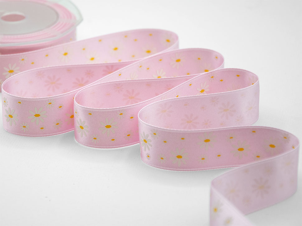 Doppio Raso Stampa Serigraf.25 MM Margherite Bicolor Rosa Baby. Il nastro elegante e raffinato per definizione è il doppio raso, qui è presentato in una variante stampata. È versatile e bello da lavorare e, nella sua semplicità, si presta ad ogni utilizzo. Essendo un prodotto di alta qualità si annoda molto facilmente formando un bel fiocco con le code che presentano un taglio netto e definito, che non si sfilaccia. Il suo aspetto è luminoso, consistente e corposo, ma al tatto è decisamente delicato e setoso. I suoi 25 mm di altezza e le infinite possibilità di personalizzazione lo rendono un nastro ideale per molteplici utilizzi: dalla confezione di bomboniere di matrimoni e cerimonie alla decorazione dei fiori e della tavola; dalle confezioni regalo, anche natalizie, a tutti gli eventi di pregio.. Codice colore# 45/20 - CONFEZIONATO IN BOBINA DA METRI 10