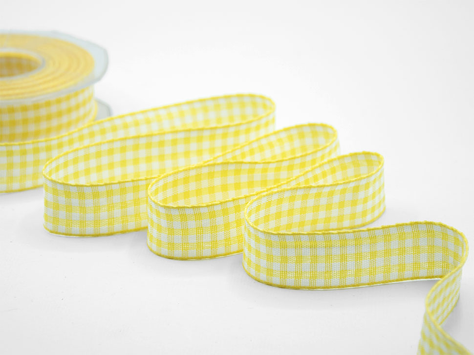 Dumbo 25 MM Giallo. Il nastro Dumbo è il nastro per la festa di campagna, per la cena con gli amici. E’ un nastro all’apparenza rustico ma dal tatto delicato. Il suo disegno ricorda le giornate all’aria aperta e la tavola del contadino. Va bene per adornare cesti di fiori di campo, vasetti di marmellata e di miele. E’ un nastro che da un'immagine di serenità e spensieratezza. E’ molto carino per chiudere il cesto in vimini del pic-nic, i sacchetti con le spezie o i pout-pourri di fiori. E’ molto utile per legare i tovaglioli della tavola imbandita, è perfetto in primavera ed estate con i colori chiari e luminosi, ed è trendy negli autunni ed inverni con i colori delle castagne e delle foglie secche.. Codice colore# 428 - CONFEZIONATO IN BOBINA DA METRI 20