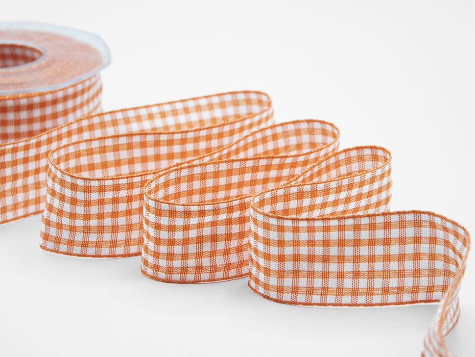 Dumbo 40 MM Arancio Pesca. Il nastro Dumbo è il nastro per la festa di campagna, per la cena con gli amici. E’ un nastro all’apparenza rustico ma dal tatto delicato. Il suo disegno ricorda le giornate all’aria aperta e la tavola del contadino. Va bene per adornare cesti di fiori di campo, vasetti di marmellata e di miele. E’ un nastro che da un'immagine di serenità e spensieratezza. E’ molto carino per chiudere il cesto in vimini del pic-nic, i sacchetti con le spezie o i pout-pourri di fiori. E’ molto utile per legare i tovaglioli della tavola imbandita, è perfetto in primavera ed estate con i colori chiari e luminosi, ed è trendy negli autunni ed inverni con i colori delle castagne e delle foglie secche.. Codice colore# 41 - CONFEZIONATO IN BOBINA DA METRI 20