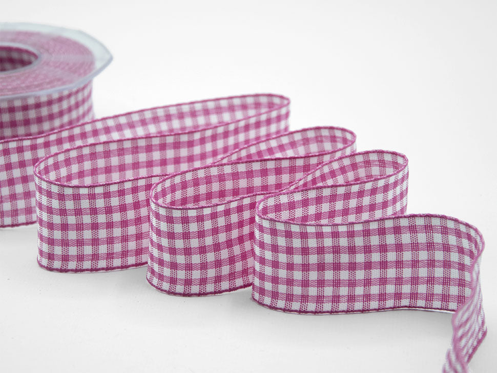 Dumbo 40 MM Ciclamino. Il nastro Dumbo è il nastro per la festa di campagna, per la cena con gli amici. E’ un nastro all’apparenza rustico ma dal tatto delicato. Il suo disegno ricorda le giornate all’aria aperta e la tavola del contadino. Va bene per adornare cesti di fiori di campo, vasetti di marmellata e di miele. E’ un nastro che da un'immagine di serenità e spensieratezza. E’ molto carino per chiudere il cesto in vimini del pic-nic, i sacchetti con le spezie o i pout-pourri di fiori. E’ molto utile per legare i tovaglioli della tavola imbandita, è perfetto in primavera ed estate con i colori chiari e luminosi, ed è trendy negli autunni ed inverni con i colori delle castagne e delle foglie secche.. Codice colore# 68 - CONFEZIONATO IN BOBINA DA METRI 20