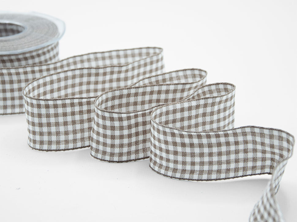 Dumbo 40 MM Tortora. Il nastro Dumbo è il nastro per la festa di campagna, per la cena con gli amici. E’ un nastro all’apparenza rustico ma dal tatto delicato. Il suo disegno ricorda le giornate all’aria aperta e la tavola del contadino. Va bene per adornare cesti di fiori di campo, vasetti di marmellata e di miele. E’ un nastro che da un'immagine di serenità e spensieratezza. E’ molto carino per chiudere il cesto in vimini del pic-nic, i sacchetti con le spezie o i pout-pourri di fiori. E’ molto utile per legare i tovaglioli della tavola imbandita, è perfetto in primavera ed estate con i colori chiari e luminosi, ed è trendy negli autunni ed inverni con i colori delle castagne e delle foglie secche.. Codice colore# 54 - CONFEZIONATO IN BOBINA DA METRI 20