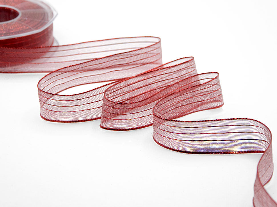 Firenze 26 MM Rosso. Un nastro un po' lamé e un po' velo organza, perfetto per l'albero di natale e i pacchi regalo, il Firenze è molto elegante e raffinato. . Codice colore# 31 - CONFEZIONATO IN BOBINA DA METRI 20