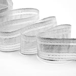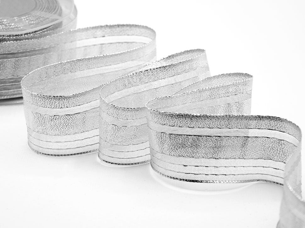 Firenze 46 MM Argento. Un nastro un po' lamé e un po' velo organza, perfetto per l'albero di natale e i pacchi regalo, il Firenze è molto elegante e raffinato. . Codice colore# 101 - CONFEZIONATO IN BOBINA DA METRI 20