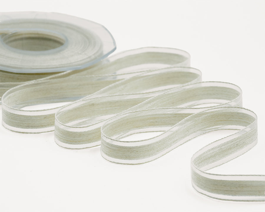 Melange Bordi Velo 15 MM Avorio. Il nastro mélange con i bordi in velo è un nastro melangiato, ottenuto tramite la tessitura di filati di cotonieri di tonalità diverse tra loro.