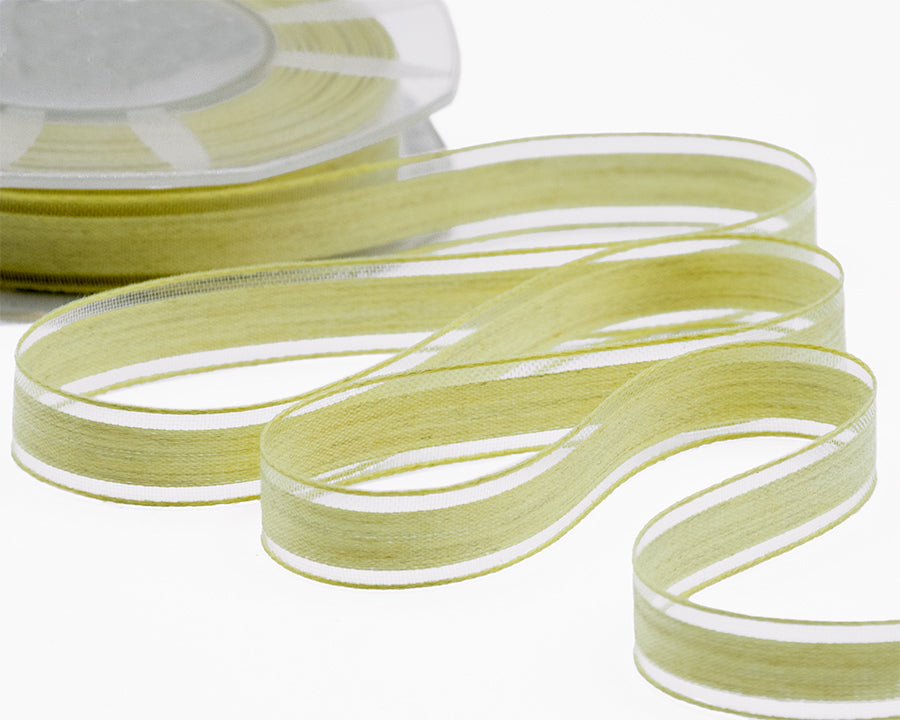 Melange Bordi Velo 15 MM Giallo. Il nastro mélange con i bordi in velo è un nastro melangiato, ottenuto tramite la tessitura di filati di cotonieri di tonalità diverse tra loro.