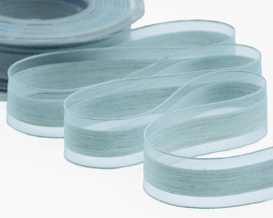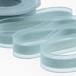 Melange Bordi Velo 25 MM Azzurro Baby. Il nastro mélange con i bordi in velo è un nastro melangiato, ottenuto tramite la tessitura di filati di cotonieri di tonalità diverse tra loro.