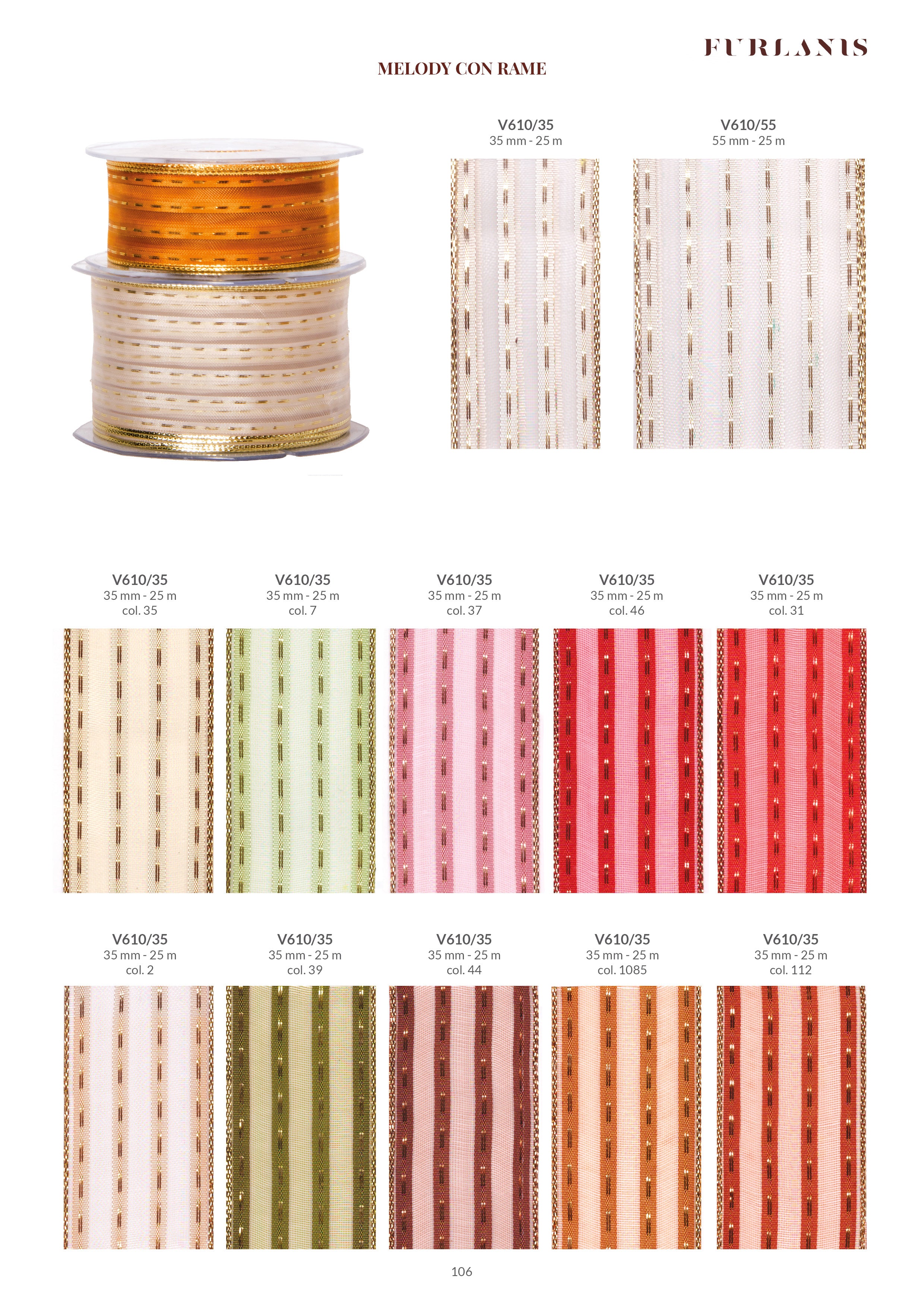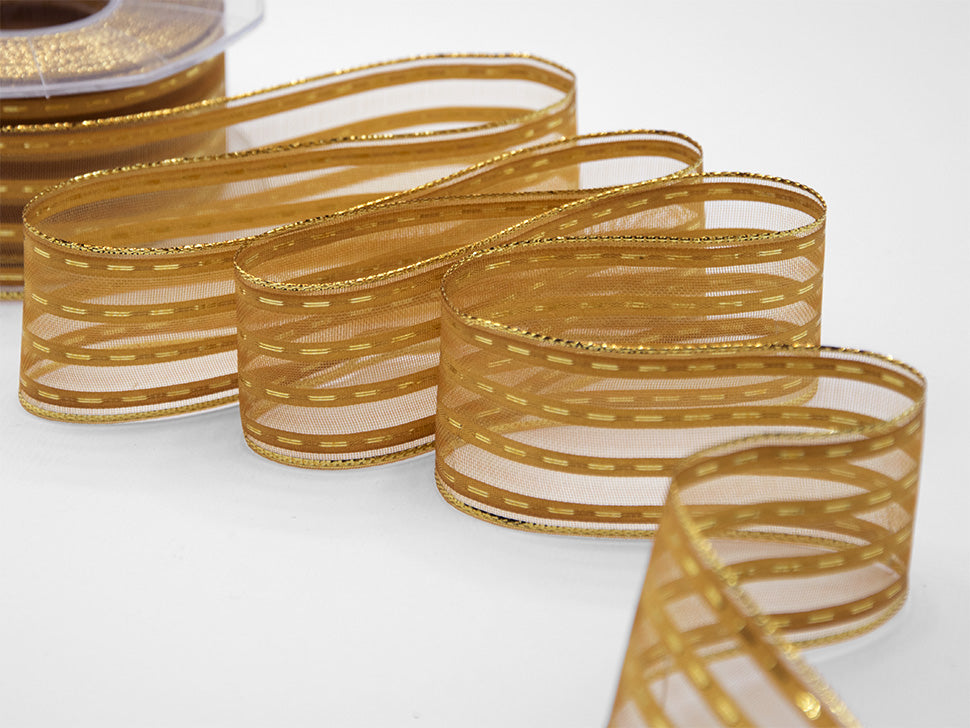 Melody 35 MM Senape. Questo nastro natalizio dai mille colori e con l'impuntura oro è un classico della decorazione delle feste e dei pacchi regalo per Natale. Ha i bordi animati con un ferretto metallico per aiutare la realizzazione delle confezioni e mantenere la forma. Codice colore# 1085 - CONFEZIONATO IN BOBINA DA METRI 25