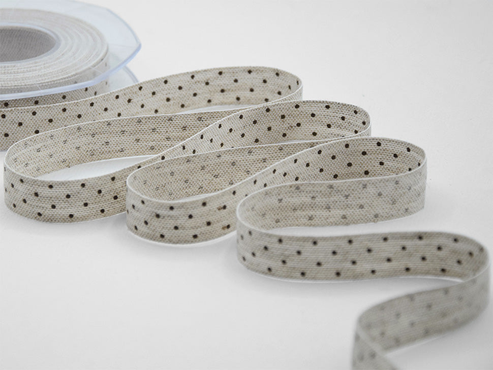 Nastro Lino Canapa 16 MM Serig. Pois Marrone. E’ un nastro molto pregiato, in lino, canapa e viscosa, sinonimo di natura, ricorda le tele di una volta. Sembra ruvido, ma non lo è, è molto facile da lavorare. Ha un colore nocciola, classico e semplice. Dall’apparenza rustica, in realtà è molto elegante e abbina l’antico con il moderno, la tradizione naturale con l’eleganza più raffinata. E’ il complemento ideale per i prodotti artigianali e può essere utilizzato benissimo anche nelle cerimonie più eleganti. Questo nastro trasmette calore e semplicità. I Nastri in lino e canapa esistono anche nella versione con impuntura, sono molto caratteristici grazie ai loro colori naturali ed al loro aspetto rustico ed elegante, perfetti per dare un effetto chic e naturale ad ogni tipo di decorazione. Basta giocare con la fantasia e usare questi nastri di stoffa per la realizzazione di svariati progetti fai da te e artigianali; sono perfetti per il tema natalizio, rustico, country, vintage e shabby e per la realizzazione di bomboniere: battesimo, comunione, cresima, laurea, matrimonio, diciottesimo, fidanzamento. Questa versione con la stampa in serigrafia di pois riscuote un successo particolare. Prodotti con materiale di alta qualità. Codice colore# 44 - CONFEZIONATO IN BOBINA DA METRI 10