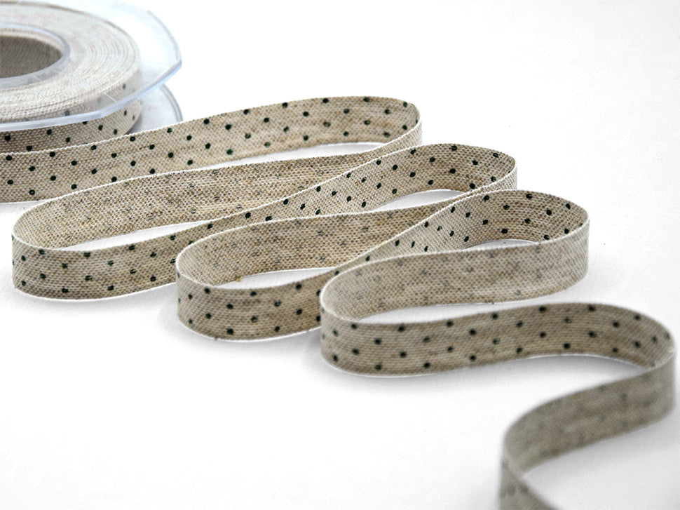 Nastro Lino Canapa 16 mm Serig. Pois Verde Inglese