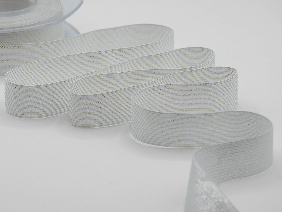 L’articolo V171/40 è un nastro coprente, illuminato da fili di lamè aggiunti nella trama che creano un effetto festoso.