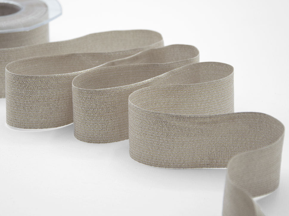 Nastro Smile 40 MM Tortora. Il nastro in stoffa Smile è un nastro luminoso e brillante, perfetto per dare un tocco glamour ed elegante alle nostre creazioni.