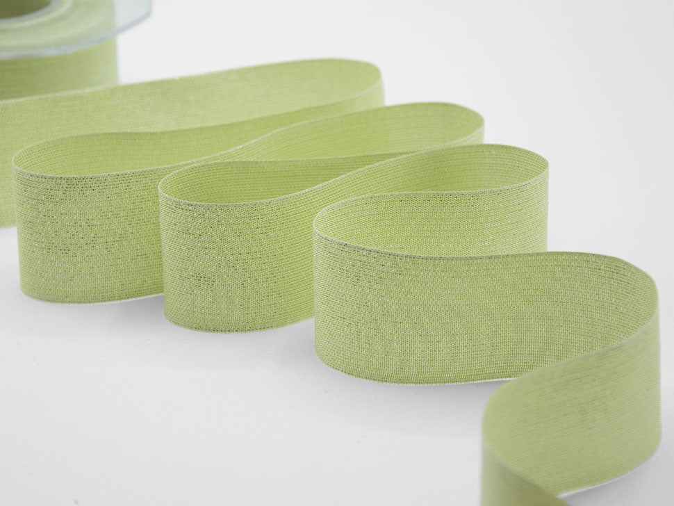 Nastro Smile 40 MM Verde Pistacchio. Il nastro in stoffa Smile è un nastro luminoso e brillante, perfetto per dare un tocco glamour ed elegante alle nostre creazioni.