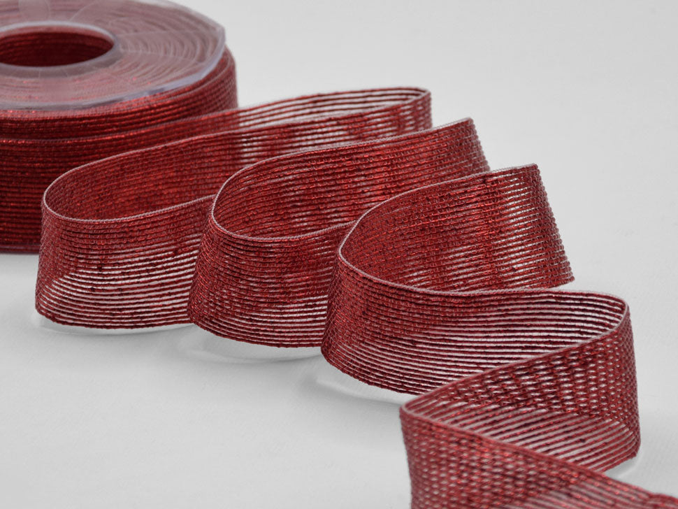 Orotondo 38 MM Rosso. Nastro in oro tondo per Natale tessuto con filato di alto pregio. Codice colore# 31 - CONFEZIONATO IN BOBINA DA METRI 15