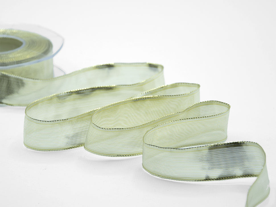 Piattina Elegante C Rame 25 MM Oro Vecchio. Nastro in taffetà cangiante con filato lurex oro e argento, per confezioni regalo di grande qualità. Codice colore# 105 - CONFEZIONATO IN BOBINA DA METRI 20