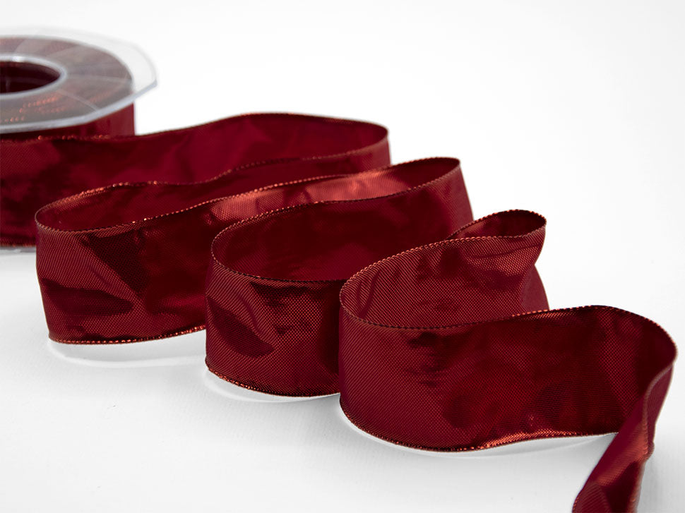 Piattina Elegante C Rame 40 MM Rosso. Nastro in taffetà cangiante con filato lurex oro e argento, per confezioni regalo di grande qualità. Codice colore# 31 - CONFEZIONATO IN BOBINA DA METRI 20