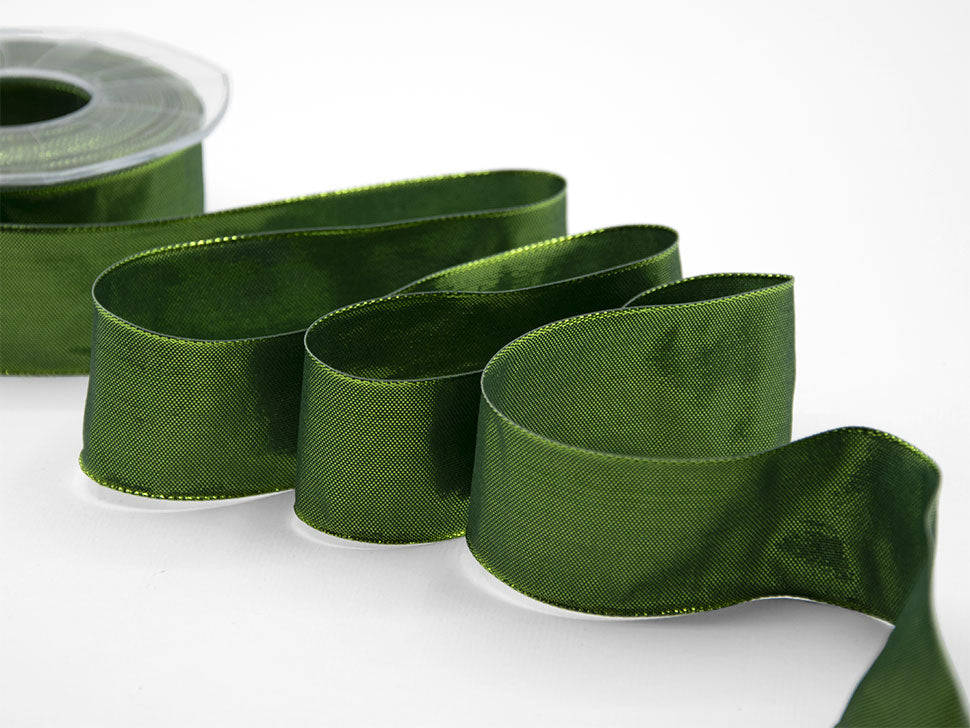 Piattina Elegante C Rame 40 MM Verde Inglese. Nastro in taffetà cangiante con filato lurex oro e argento, per confezioni regalo di grande qualità. Codice colore# 633 - CONFEZIONATO IN BOBINA DA METRI 20