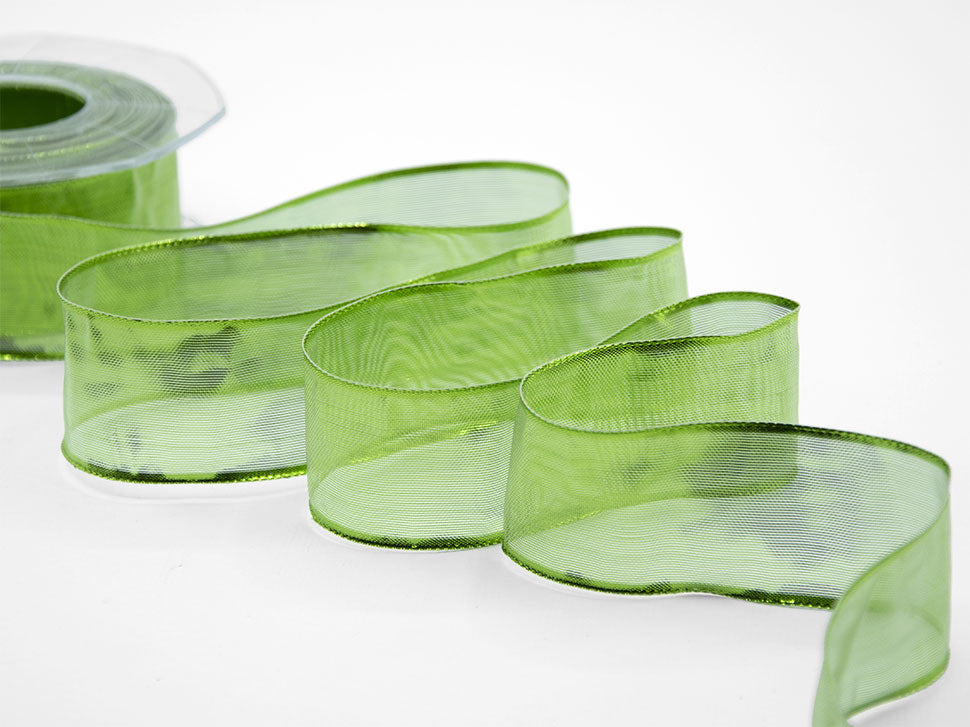 Piattina Elegante C Rame 40 MM Verde Pistacchio. Nastro in taffetà cangiante con filato lurex oro e argento, per confezioni regalo di grande qualità. Codice colore# 139 - CONFEZIONATO IN BOBINA DA METRI 20