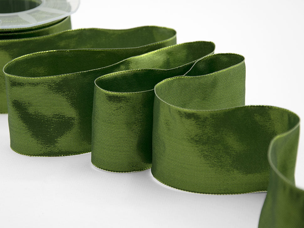Piattina Elegante C Rame 60 MM Verde Inglese. Nastro in taffetà cangiante con filato lurex oro e argento, per confezioni regalo di grande qualità. Codice colore# 633 - CONFEZIONATO IN BOBINA DA METRI 20