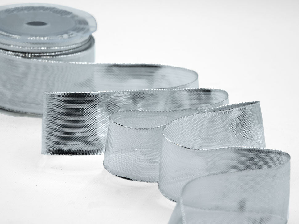 Piattina Lurex 40 MM Con Rame Argento. Nastro in taffetà con filato lurex oro e argento, per confezioni regalo classiche e tradizionali. Codice colore# 101 - CONFEZIONATO IN BOBINA DA METRI 20