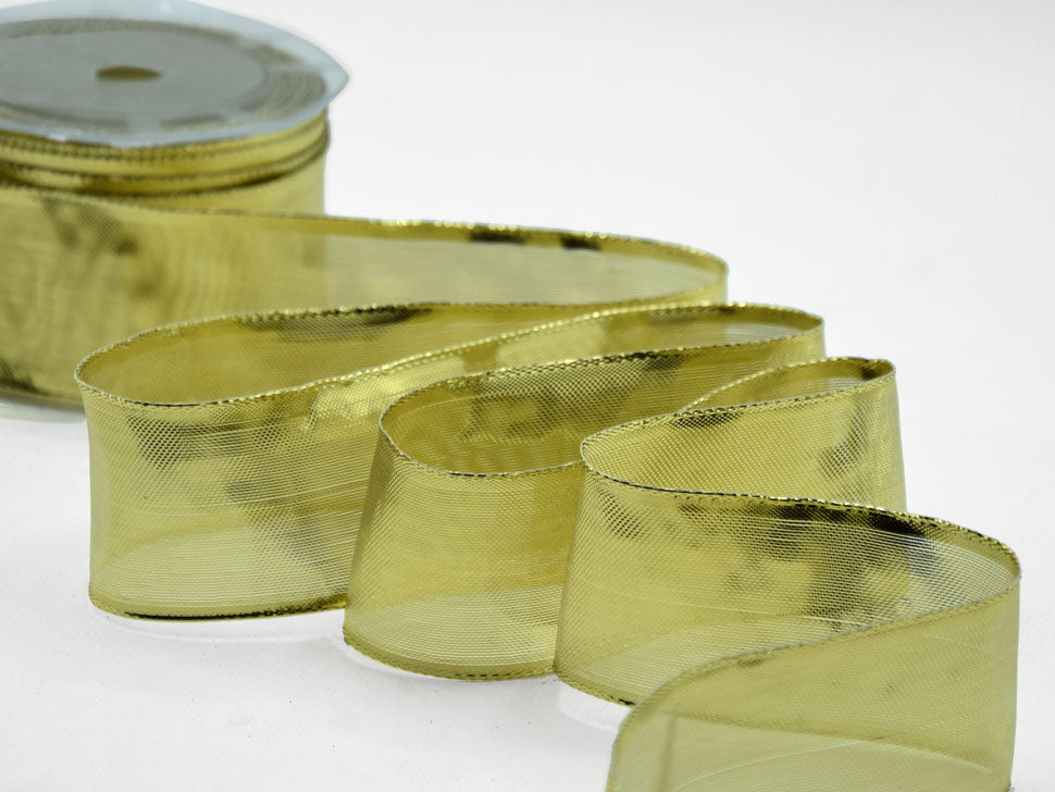 Piattina Lurex 40 MM Oro Con Rame. Nastro in taffetà con filato lurex oro e argento, per confezioni regalo classiche e tradizionali. Codice colore# 102 - CONFEZIONATO IN BOBINA DA METRI 20