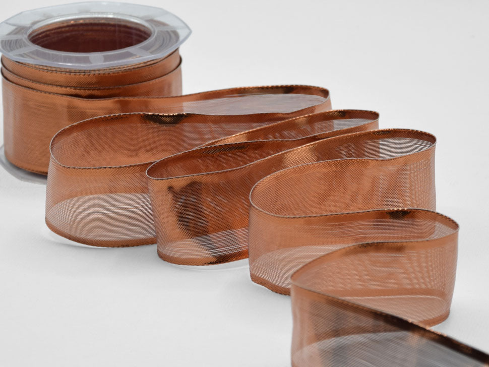 Piattina Lurex 40 MM Con Rame Rame. Nastro in taffetà con filato lurex oro e argento, per confezioni regalo classiche e tradizionali. Codice colore# 103 - CONFEZIONATO IN BOBINA DA METRI 20