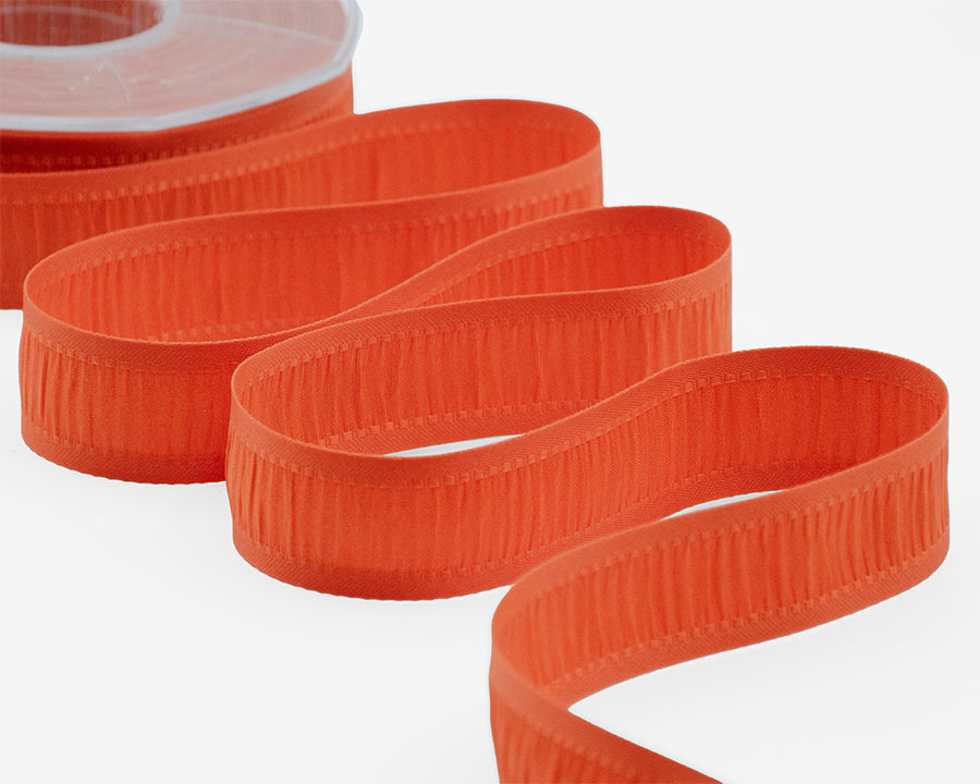 Plisse 25 MM Arancione. Nastro in tessuto plissé per decorazioni eleganti, matrimoni, nascita, fiocchi, bomboniere plisettate. Codice colore# 40 - CONFEZIONATO IN BOBINA DA METRI 20