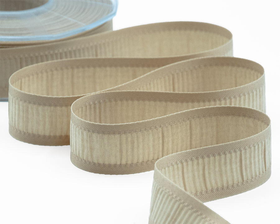 Plisse 25 MM Beige. Nastro in tessuto plissé per decorazioni eleganti, matrimoni, nascita, fiocchi, bomboniere plisettate. Codice colore# 2 - CONFEZIONATO IN BOBINA DA METRI 20