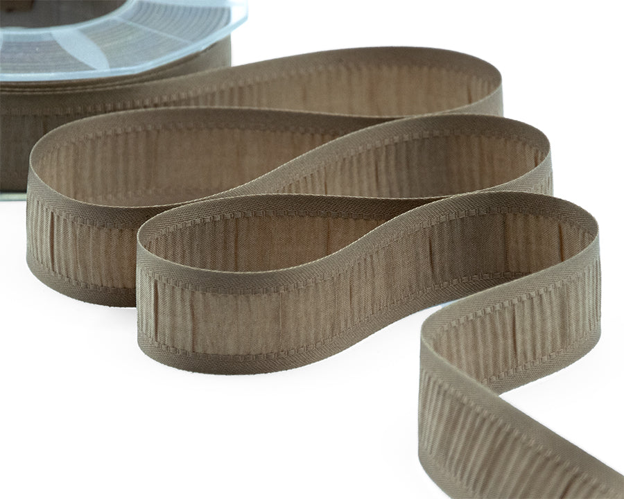 Plisse 25 MM Cannella. Nastro in tessuto plissé per decorazioni eleganti, matrimoni, nascita, fiocchi, bomboniere plisettate. Codice colore# 55 - CONFEZIONATO IN BOBINA DA METRI 20
