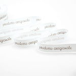 Policotone 15 MM Stampa Prodotto Artigianale Bianco. I nastri in policotone e dall’aspetto naturale sono in linea con le tendenze green per realizzare confezioni e decorazioni dall’effetto rustico o grezzo. Molto apprezzato per le sue caratteristiche sono i nastri in poliestere cotoniero. Opaco, dall’aspetto naturale, è piacevole al tatto perché è morbido e caldo, sembra leggermente felpato. Si lavora facilmente e viene usato sempre più spesso per le creazioni di confezioni di regalo di lusso, per le maniglie di shopper, per le creazioni di bomboniere, per le decorazioni natalizie, per gli addobbi floreali e per le confezioni alimentari. Apprezzato anche da importanti marchi di moda è stato scelto per la personalizzazione del loro nastro con logo. Come tutti i nostri nastri si annoda molto facilmente e al taglio non si sfilaccia. Il nastro in tessuto tipo cotone viene prodotta in un’ampia gamma di colori ed altezze ed è qui presentata nella variante stampata. Codice colore# 21/1 - CONFEZIONATO IN BOBINA DA METRI 15