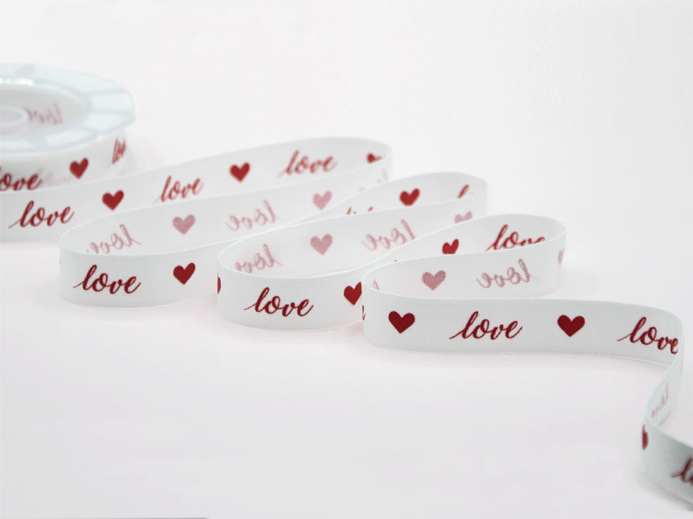 Policotone Stampa Love Serig. 15 MM Rosso. I nastri in policotone e dall’aspetto naturale sono in linea con le tendenze green per realizzare confezioni e decorazioni dall’effetto rustico o grezzo. Molto apprezzato per le sue caratteristiche sono i nastri in poliestere cotoniero. Opaco, dall’aspetto naturale, è piacevole al tatto perché è morbido e caldo, sembra leggermente felpato. Si lavora facilmente e viene usato sempre più spesso per le creazioni di confezioni di regalo di lusso, per le maniglie di shopper, per le creazioni di bomboniere, per le decorazioni natalizie, per gli addobbi floreali e per le confezioni alimentari. Apprezzato anche da importanti marchi di moda è stato scelto per la personalizzazione del loro nastro con logo. Come tutti i nostri nastri si annoda molto facilmente e al taglio non si sfilaccia. Il nastro in tessuto tipo cotone viene prodotta in un’ampia gamma di colori ed altezze ed è qui presentata nella variante stampata. Codice colore# 31 - CONFEZIONATO IN BOBINA DA METRI 10