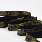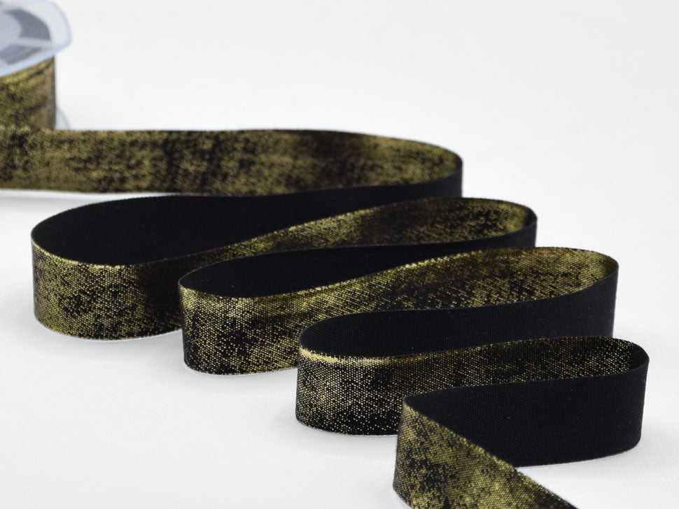 Poly Cotone 20 mm Serigrafia Laminata Murales Nero. Un nastro modernissimo, dall'aspetto urban e contemporaneo, illumina e abbellisce ogni decorazione, con la sua laminazione d'oro e lo sfondo colorato, si abbina facilmente alle vostre confezioni donando un tocco di prestigio e unicità. Codice colore# 33 - CONFEZIONATO IN BOBINA DA METRI 10